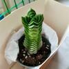 Крассула Пагода Будды — необычное декоративно-лиственное растение из семейства толстянковые. Внешне напоминает собой столбик. Листья толстые, сочные и собраны в аккуратную розетку под углом по отношению друг к другу. Цвет — серо-зеленый. Восковой налет голубого оттенка. Цветы розоватого оттенка.