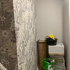 - В процессе поклейки выгоняли пузыри пластиковым шпателем для обоев. Клеили не всю обоину целиком, а сверху вниз. Примерно делили стену на 3 части и клеили сверху вниз: нанесли клей на верхнюю часть стены, подогнали обоину, приклеили, выгнали пузыри, клеим среднюю часть стены, приклеивали дальше и выгоняли пузыри. И так далее.
